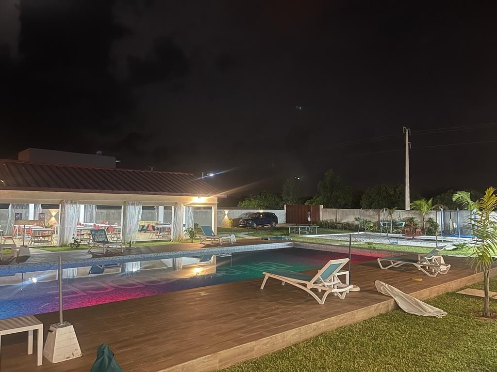 Détendez-vous dans ce logement unique et tranquille. Maison 6 pièces 4 chambres 3 salles de bain 2 salons Piscine et jacuzzi Apatam Ponton Les tarifs pratiqués à ce jour sont. LUNDI MARDI MERCREDI JEUDI 150 000 la nuitée. Week-end c'est à dire VENDREDI SAMEDI DIMANCHE. 300 000 franc la nuitée