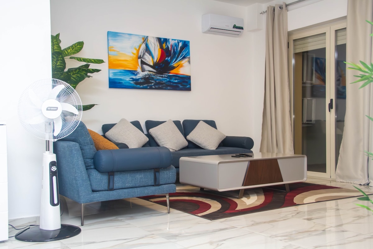 Bienvenue à Résidence HAYMES, Un appartement alliant élégance contemporaine, accents africains et haut de gamme. Niché au cœur du quartier calme de Mockeyville, ce cocon d’une chambre vous offre l’intimité d’un chez-soi, et le raffinement d’un lieu pensé pour se ressourcer. Style & Ambiance Décoration afro-minimaliste, lignes épurées, matières naturelles, objets d’art et mobilier recherchés pour profiter des chaleureuses journées, et des douces soirées bassamoises...