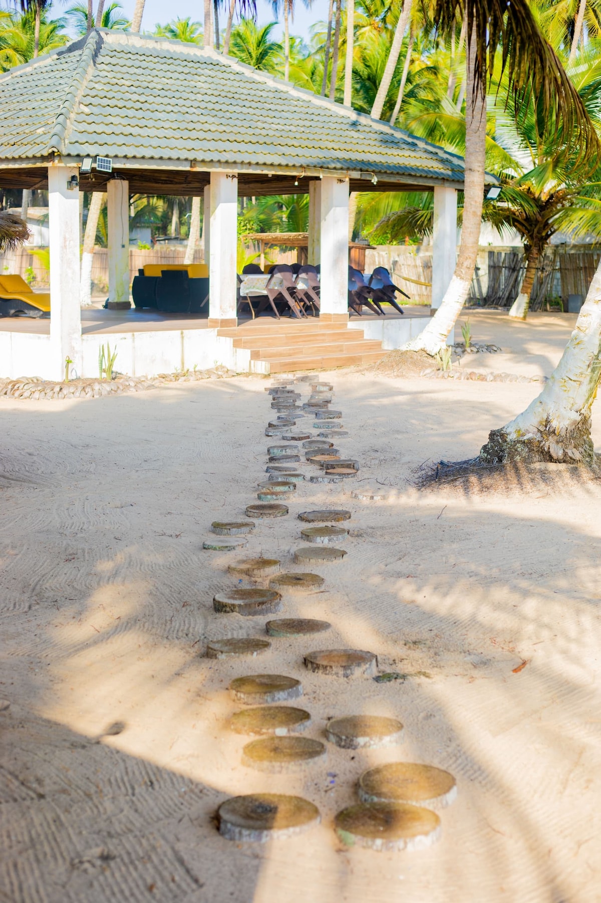 Située en Côte d’Ivoire, à Grand-Bassam ville inscrite au Patrimoine mondial de l’UNESCO, la résidence est posée sur une plage privée (1000 m2) en bordure du Golfe de Guinée. Elle est accueillante et très calme. Elle constitue une partie indépendante de la villa « La plage d’Ama ». Le jardin tropical (400 m2), ombragé par une grande paillote, est clôturé. Un portail permet l’accès à la plage sur laquelle des apatams protègent du soleil. Votre programme : farniente, bronzage, barbecues...
