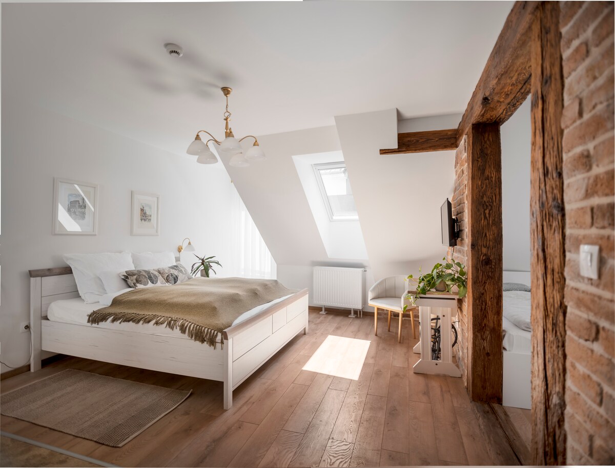 Fani&Rozi stands out with its unique location on the Drava promenade in the heart of medieval Maribor. Our guests have exceptional views of the wide river and its bridges, the Renaissance fortification Judgement Tower, the Minorite monastery and the giant oak, which is the oldest tree in the city centre. The Romantic Double Room is an attic room suitable for younger guests who do not mind the slopes. The equipment is special. All our rooms include a delicious local breakfast.