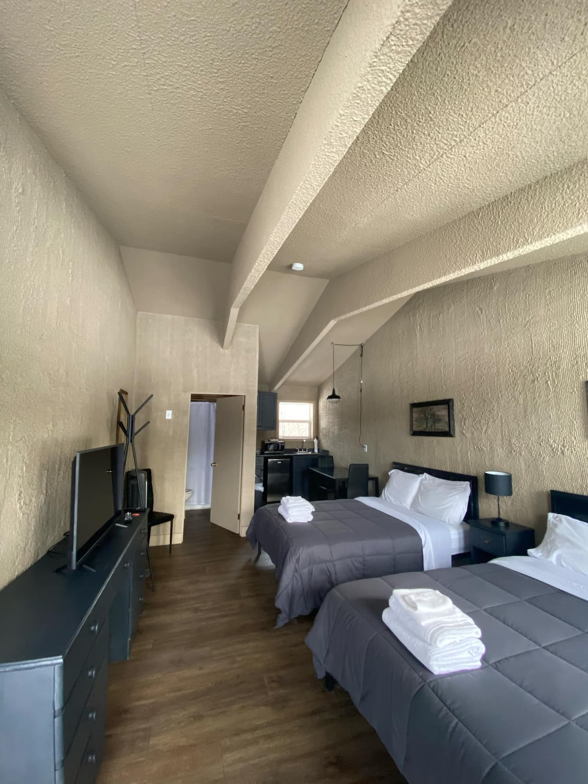 Two bed studio. Newly renovated motel rooms located at the Tunnel Lake Trading Post on Hwy 129. Convenience store complete with groceries, fishing and hunting supplies, fuel and LCBO outlet. Two public boat launches nearby and many surrounding lakes in the area. Miles of trails to explore by ATV or by foot. Come explore the beautiful Mississagi valley and all it has to offer.