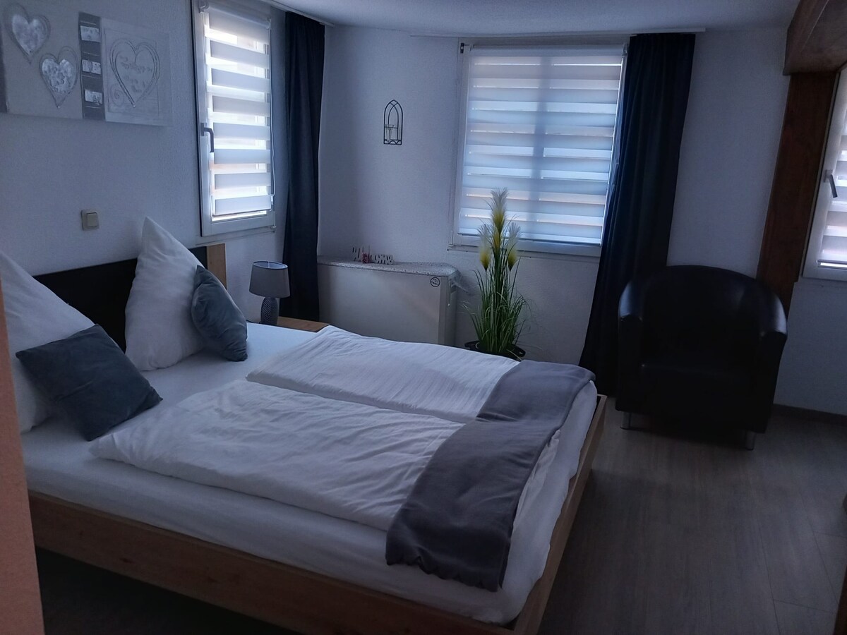 This is NOT a hotel. Room 3 is a double room with a queen bed and features a private bathroom with toilet and shower. You have a smart TV, free WIFI, mini fridge with small freezer, microwave and a water kettle. The room is only 5 minutes to Ramstein Air Base. There are stores and restaurants within walking distance and easy access to public transportation. Self-check in.