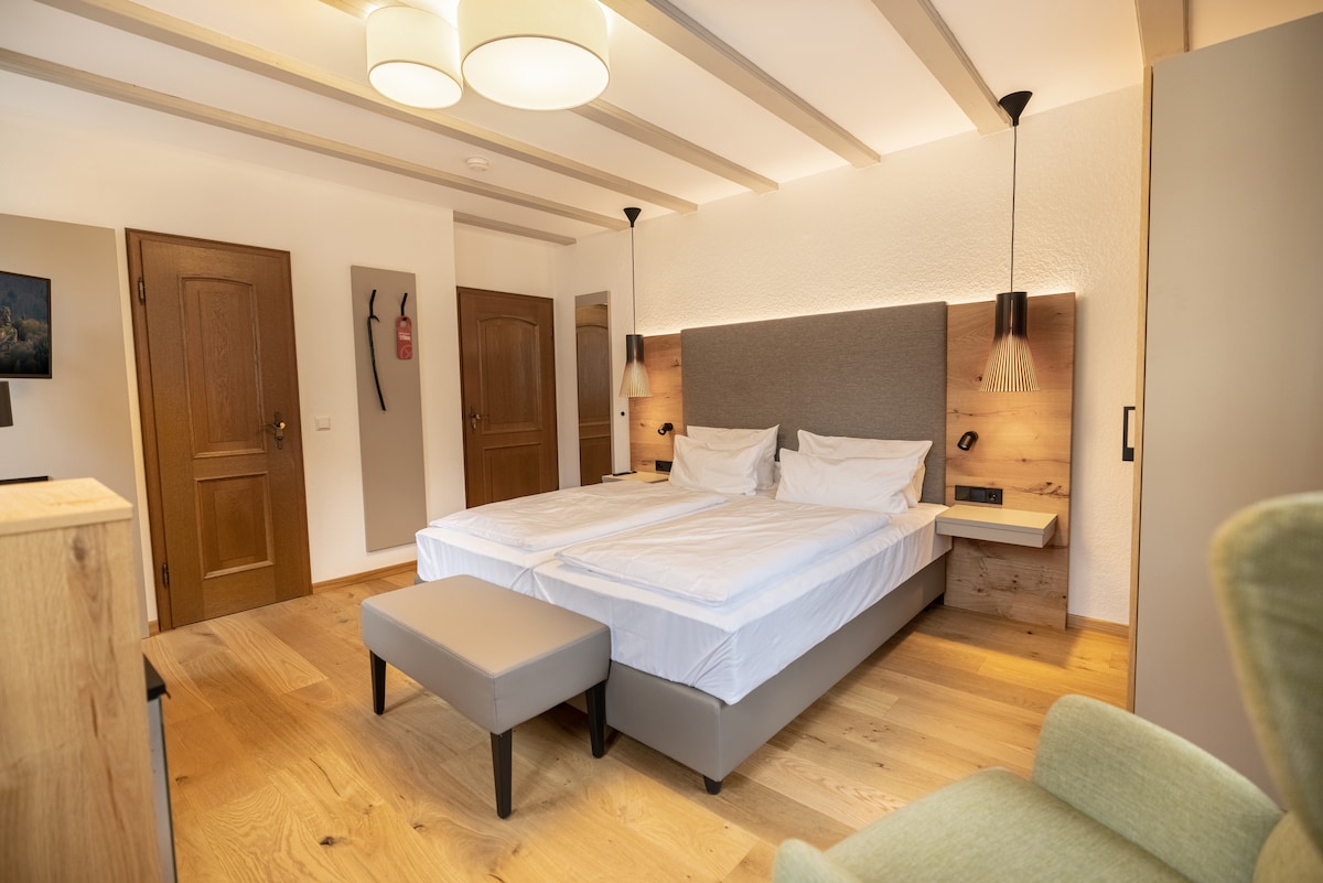 Unsere ca. 20 m² großen, hellen Zimmer überzeugen mit bodentiefen Fenstern, Klimaanlage, Verdunklungsvorhängen und Sat-TV mit Sky. Ausgestattet mit Sitzgelegenheit, Schreibtisch, Leselampe, Doppelbett (2×90×190), Kofferboy, WLAN sowie Bad/WC mit Dusche oder Wanne und Kosmetikspiegel bieten sie hohen Komfort. Jedes Zimmer ist individuell gestaltet. Babybett-Aufbettung möglich. Frühstück ist inklusive