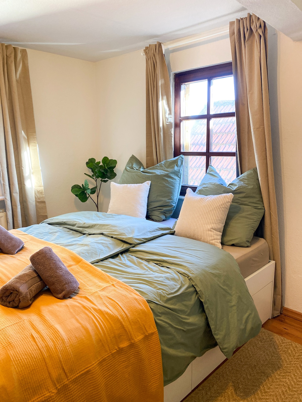 In front of our listed house from 1724, located in the heart of the old wine village of Hambach, the fountain of the church square splashes, overshadowed by the old chestnut tree. Directly behind it the vineyards offer a fantastic view over the Rhine valley. We are happy to open our bright, charming apartment, equipped with every modern comfort, for anyone who wants to explore the Palatinate. We offer a delicious breakfast with homemade products separately.