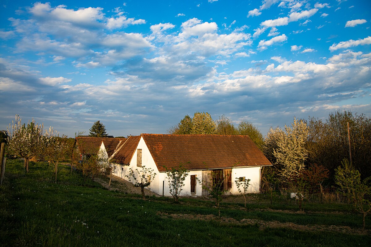 Welcome to our little farm As our guest, you'll sleep with a view of the forest and meadows, relax in the garden sauna, and shower in the cozy cabin. The wood-burning stove keeps the cabin nice and warm. There's plenty of room for culinary creativity: wood-burning stove, induction cooktop, pizza/bread oven, or barbecue. The outhouse is cozy and rustic, and the herb garden is wild. Our kittens occasionally stop by to say a playful hello. A place to slow down and connect with nature.