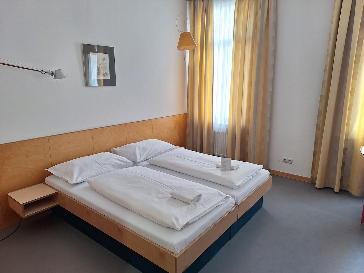 You’re here for the Soft Opening – renovation in progress. 🛏️ 2 retro-style single beds 🚿 Shared bathroom, old-school but clean (mxied) 🎨 Local art by young Graz talents in the hallways 🔑 Fully automated, no staff – self check-in via key safe Not perfect. But definitely different. Welcome to numbr25.