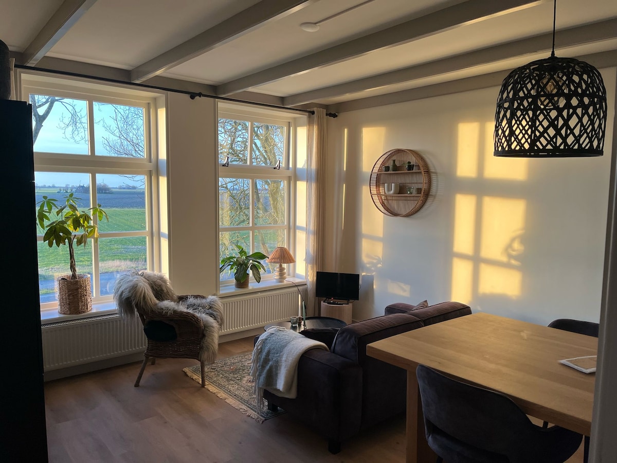 Spend the night in the heart of Fryslân, located at the Eleven Cities Tour, in the middle of the countryside. Peace, space and fresh air, where you can see the sun rise in the morning and fall in the evening. The B&B is smokeless & animals are alowed by mutual agreement. Breakfast (not included in the price) is between 7:00 am and 9:00 am. It is also possible to have lunch on the balcony.