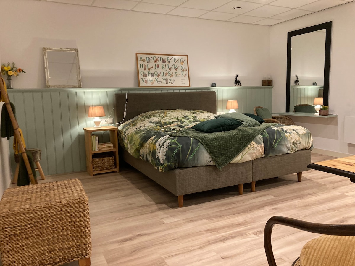 Our farmhouse is located next to the touristic Frisian fishing village of Lemmer. With beach and supermarket 1 km away. Private entrance from the outside of the farmhouse. Kitchen block (no cooking facilities) but fridge, coffee and tea. Luxurious new bathroom with walk-in shower and toilet. In the haystack possibility for relaxation. You can have breakfast in your own room or in the tea garden. The (electric) bicycles can be used at an additional cost.