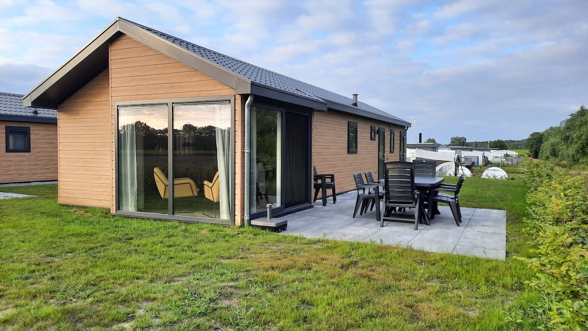 位于艾瑟尔湖附近的现代化度假木屋,带游泳池