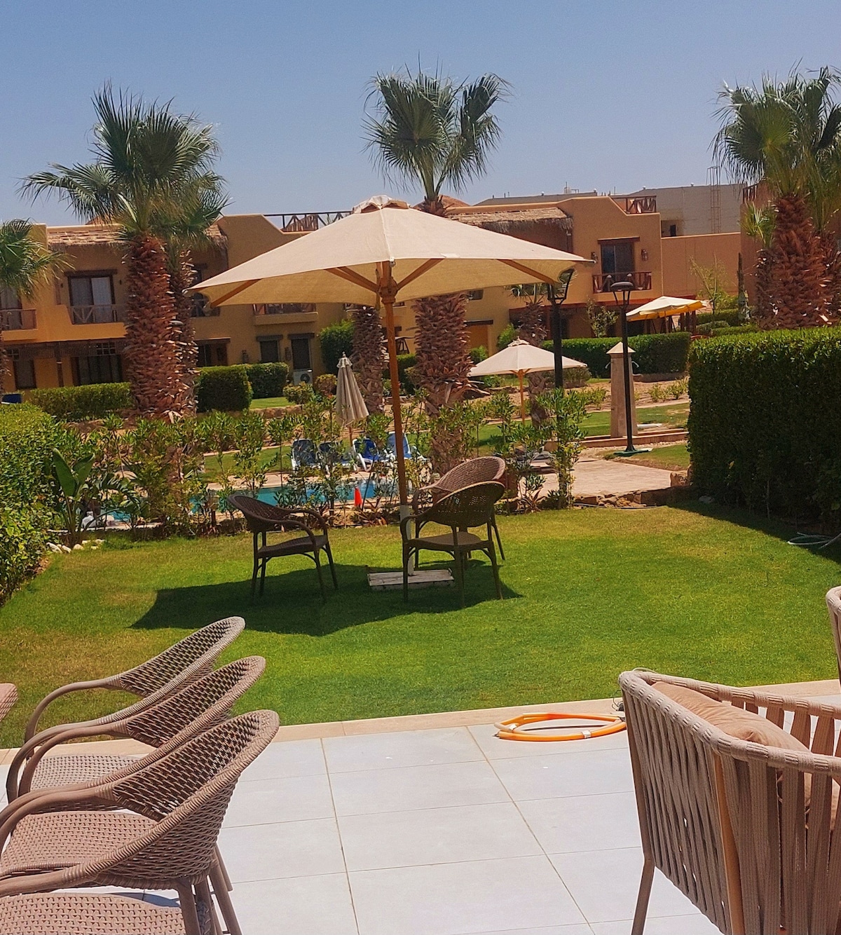 The property directly to the beach and pool, it’s peaceful, the resort called Elwadi, the property is a an apartment 100 m2 + 100 m2 roof + 100 Garden 50 meters from beach and pool The great thing about the resort it has a sandy beach and it’s open 24 hrs not like other resorts which close by the sunset 3 supermarkets 6 restaurants Jetski Boat trip Banana boat There’s a kayak and bicycle for free I also provide a free wheelchair for seniors Note: mixed groups aren’t allowed