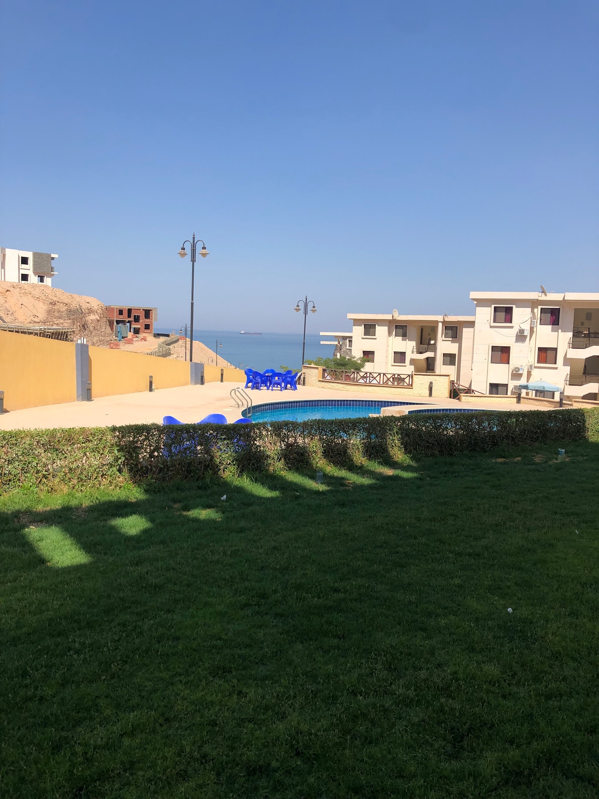 Amazing new cozy private chalet , 2 Air conditioned rooms & reception with 2 stand fans, ground floor, has a terrace, few feet from the private pool, & 3 minutes walk from the sea. In the resort there's a restaurant, security, coffee shop, billiard room.