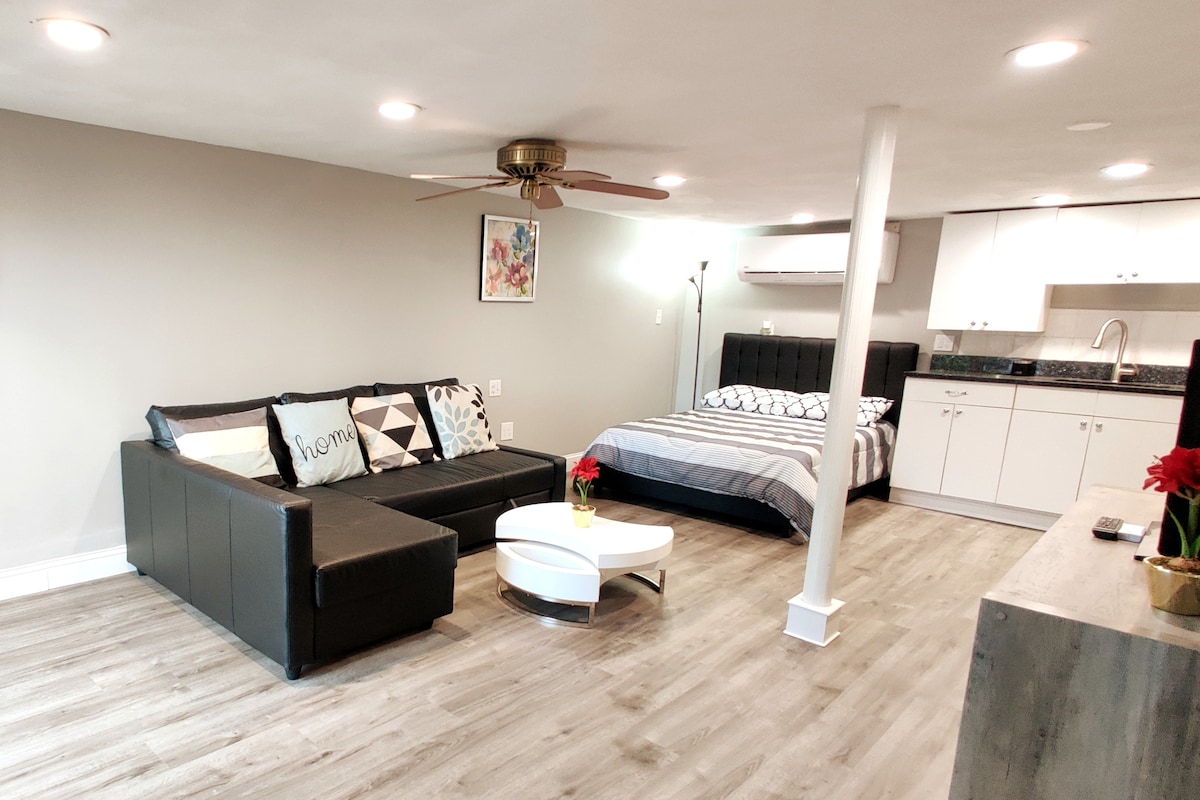 The Boston Skyline sunsets are beautiful during the summer, just a minute down the street from your Airbnb. This cozy studio, with private entrance, and bathroom includes FREE off-street parking, high-speed internet access, comfy and cozy queen bed with premium linens, nespresso, fridge, with complimentary munchies and NO cleaning fee. Check out the beaches and restaurants. Relax watching your favorite show on the HD smart television or catch up on work with the spacious desk area.