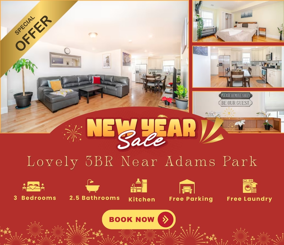 亚当斯公园附近的舒适3卧儿童友好型房源•停车位