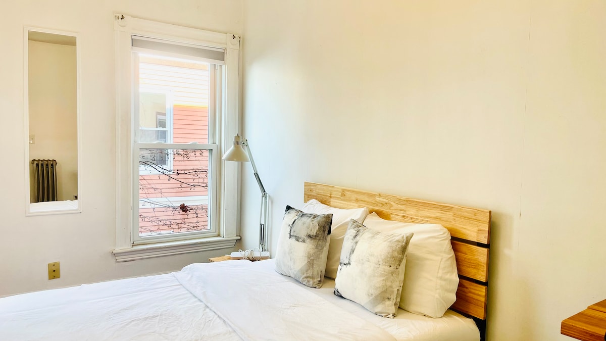 Stay in a charming townhouse cottage that blends history with comfort. With original hardwood floors, rustic exposed beams, and a sunlit skylight, the home feels warm and inviting. The home has 2 bedrooms with one king-size bed, one queen-size bed, bathroom, living room, and Eat in Kitchen. Free tandem parking for 2 cars, makes city access stress-free. Book your stay and feel right at home!