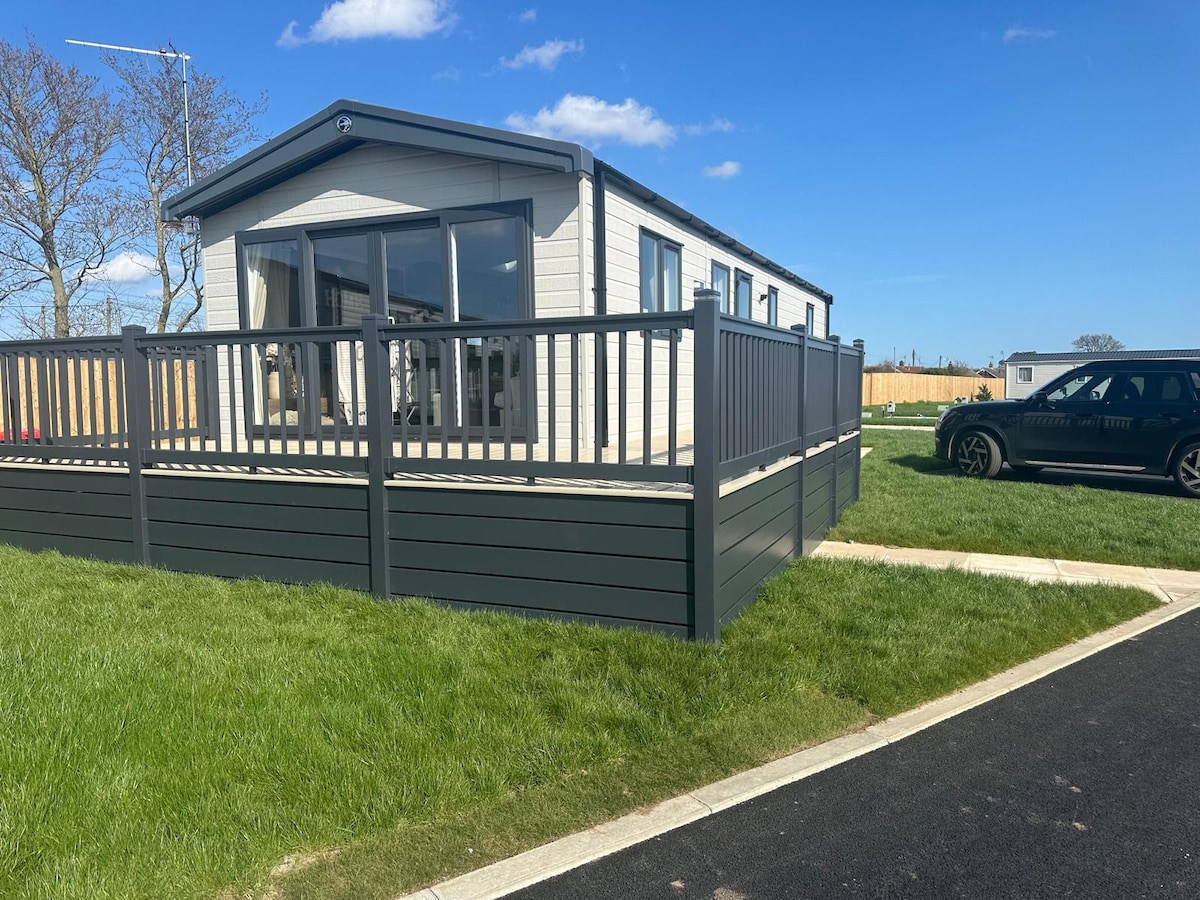 The View Contemporary frontline lodge with panoramic sea views, large wrap round decking with outside furnishings, parking. One king bed with ensuite, One double bed and one double sofa bed located in lounge area. The View is located within ocean glade at the beautiful Azure Seas holiday park, within walking distance to the beach, woods, Pleasurewood Hills Theme Park, and nearby pubs. The view is a perfect base for many attractions on the east coast.