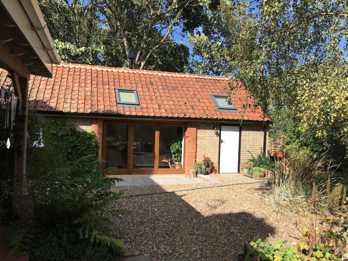 Stylish, light, and relaxing space, nestled amidst a peaceful garden and orchard, with a summerhouse, firepit, bbq, hammock, and lots of space for alfresco dining. An ideal summer or winter retreat! Why not escape to your very own bolt hole in the country. The Cartlodge sits in the grounds of a 16th Century Manor House, in the peaceful village of Tacolneston, near the thriving, historical city of Norwich.
