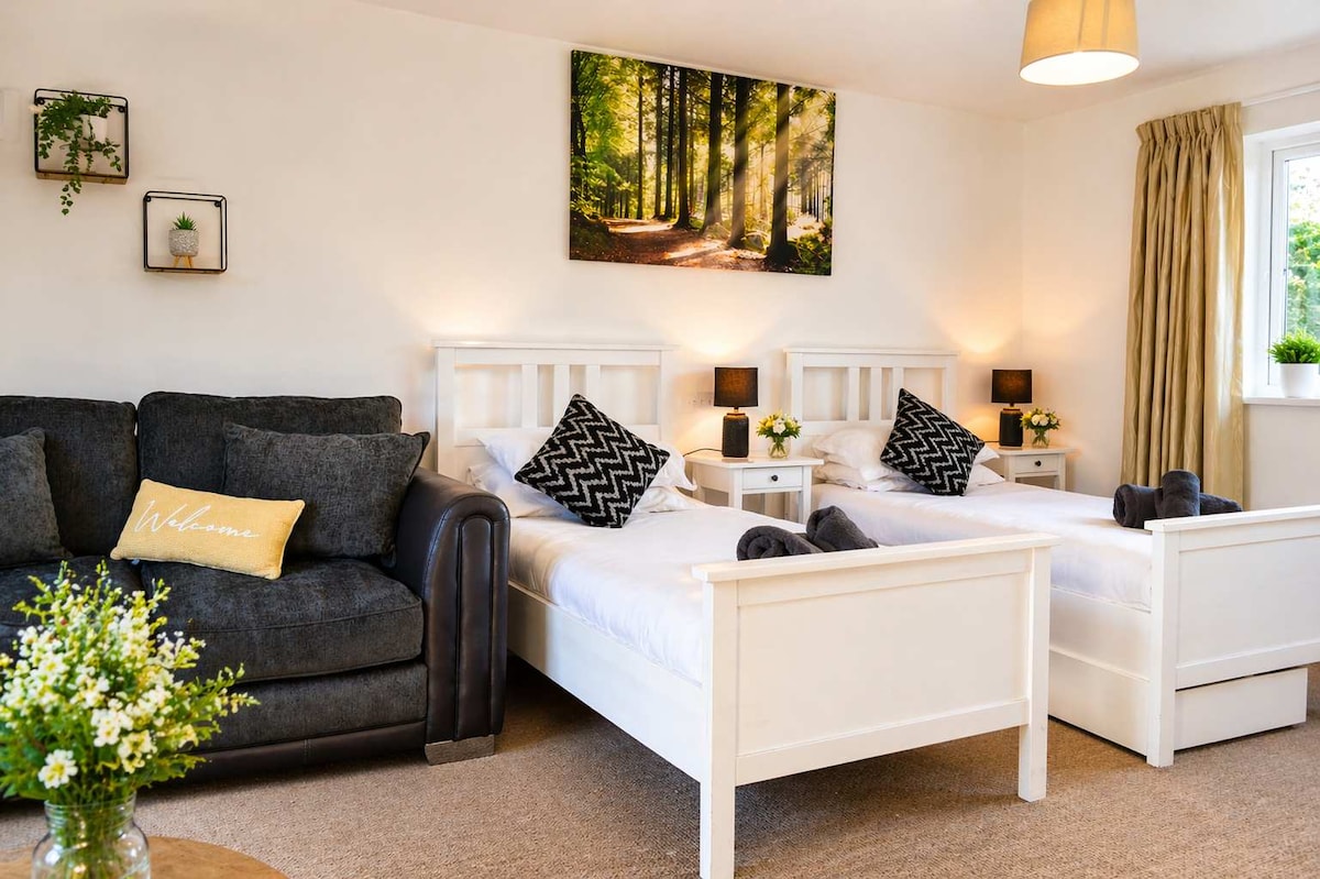 Ours is a quirky home, with 2 bedrooms, 2 bathrooms a lounge (with wood burner)and kitchen diner. The Annex is nestled in the woods conveniently located for the broads, Beccles, Lowestoft and Great Yarmouth. Our closest beach, Gorleston is a 10 minute drive away. In a very peaceful setting, we hope you will be able to unwind and relax. The Annex can be arranged as 2 superking bedrooms, or 1 superking and 1 twin. With your own entrance you will be totally independent.