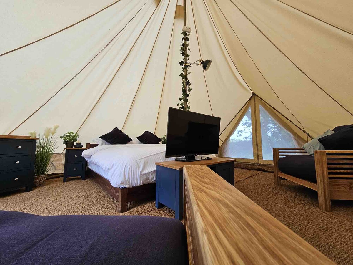 Bell Tent 5, inc private shower room & proper beds