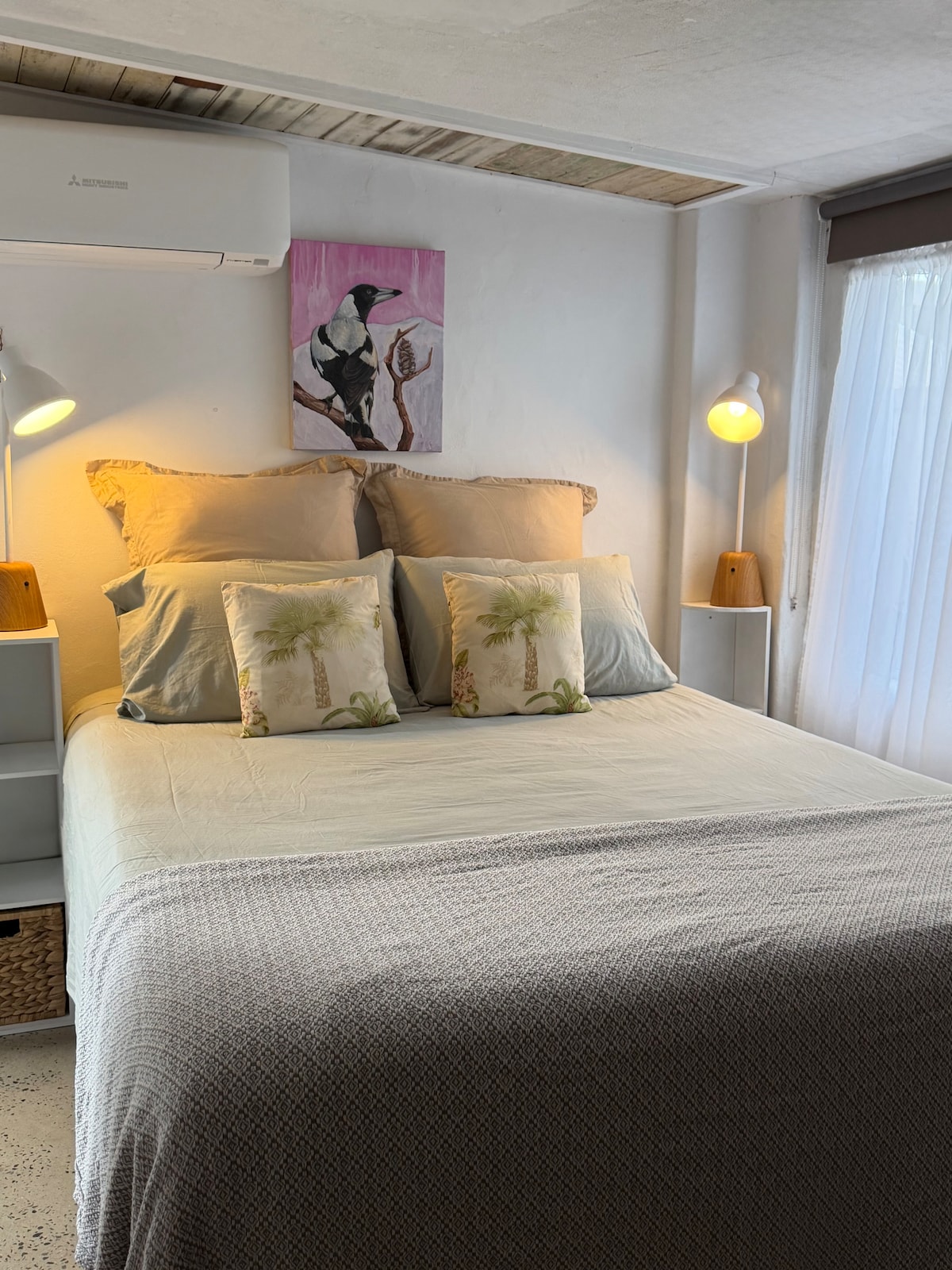 Welcome to Swell Studio, a newly renovated and luxurious space steps from Tallows Beach. Modern and stylish with access to a gorgeous pool overlooking Tallows Creek. Perfect for romantic getaways & quiet weekends yet only 12 minutes drive to the heart of Byron. The studio is equipped with a full kitchen + king-sized bed +every amenity for a comfortable stay. Heaps of activities just outside your door; walking/biking trails, surfing, swimming- even fishing!