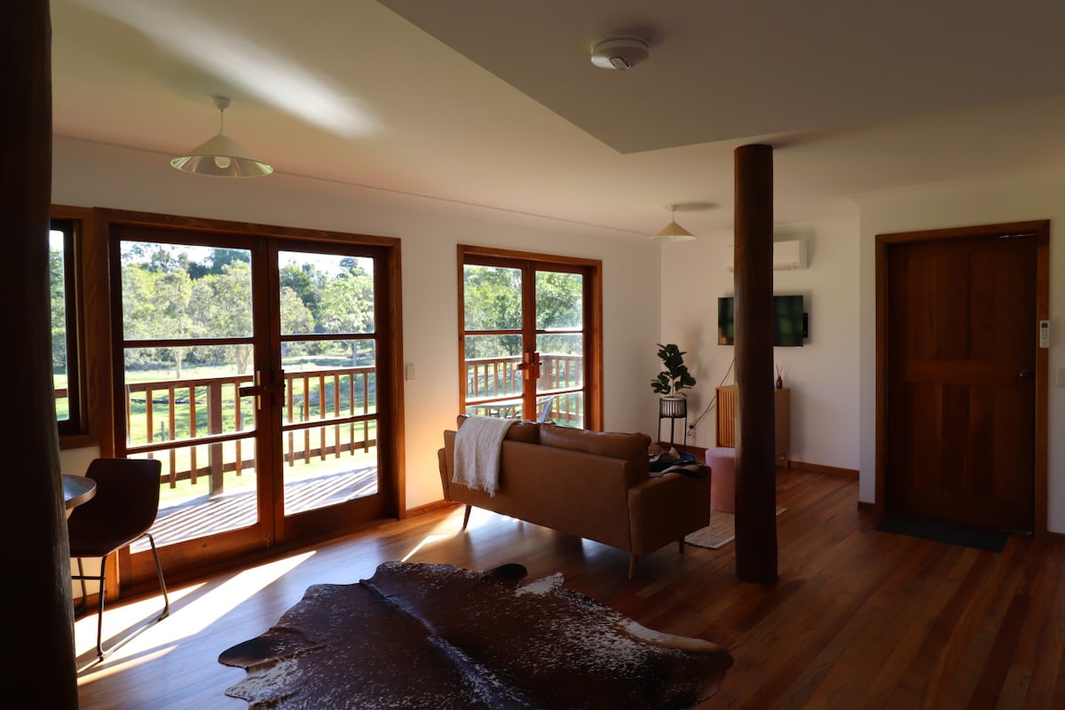The Eureka Studio is set on a secluded one acre property up in the Byron Bay Hinterland, in the middle of the vibrant Northern Rivers region and only 25 minutes from Byron Bay. Private and comfortable, it is ideal for a quiet romantic getaway. It provides everything you are looking for to shake off those city blues. The studio is semi-detached to our house, so whilst we live next to it, we try to give our guests as much privacy as they need.
