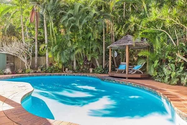 LUXURY BOUTIQUE GUESTHOUSE Located just eight minutes drive from Byron Bay and its famous beaches and seven minutes from the quaint, historic town of Bangalow. Sunken into the lush, beautiful, green hinterland lies Hidden Valley Guesthouse. Enjoy the private, spacious inside and outside living space and amazing gardens with a stunning fresh water rock pool. Delicious breakfasts are included daily. No kids. 2 people only, no visitors allowed. No smoking on entire property.