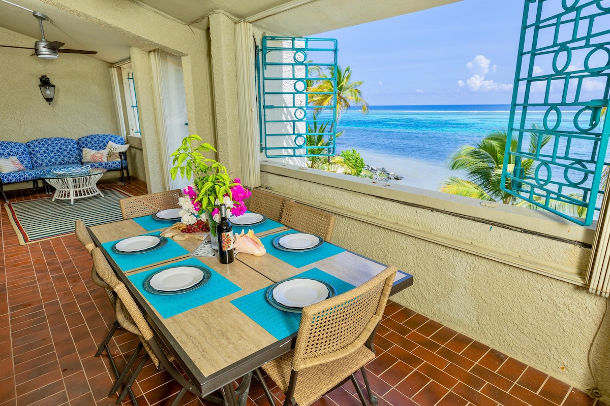 One of the best places on St Croix! You are steps from our beach, pool and hot tub, with amazing views from inside and our balcony. Everything is new with luxury finishes! Gorgeous kitchen with quartz counters and new appliances. You get a beautiful bathroom, an amazing bedroom with a new bed, the 55" TV with 50 DVDs and those amazing views! Centrally located to enjoy Buck Island, Hotel on the Cay, Cane Bay beach and Rainbow beach, restaurants, and more. You will love it!