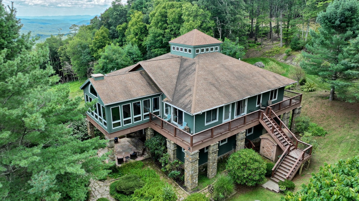 Unique Rustic Blowing Rock NC Cabin with Amazing long range BlueRidge Mountain Views overlooking the Pisgah national Forest. This stylish Mountain Modern Cabin is luxurious, beautiful and has two Master bedrooms with full bathrooms. The cabin is designed with attention to detail and curated for our guests comfort. Experience ever changing spectacular views on two sides of the Ridgeline. It is settled amongst lush, green nature views near the Village of Blowing Rock.