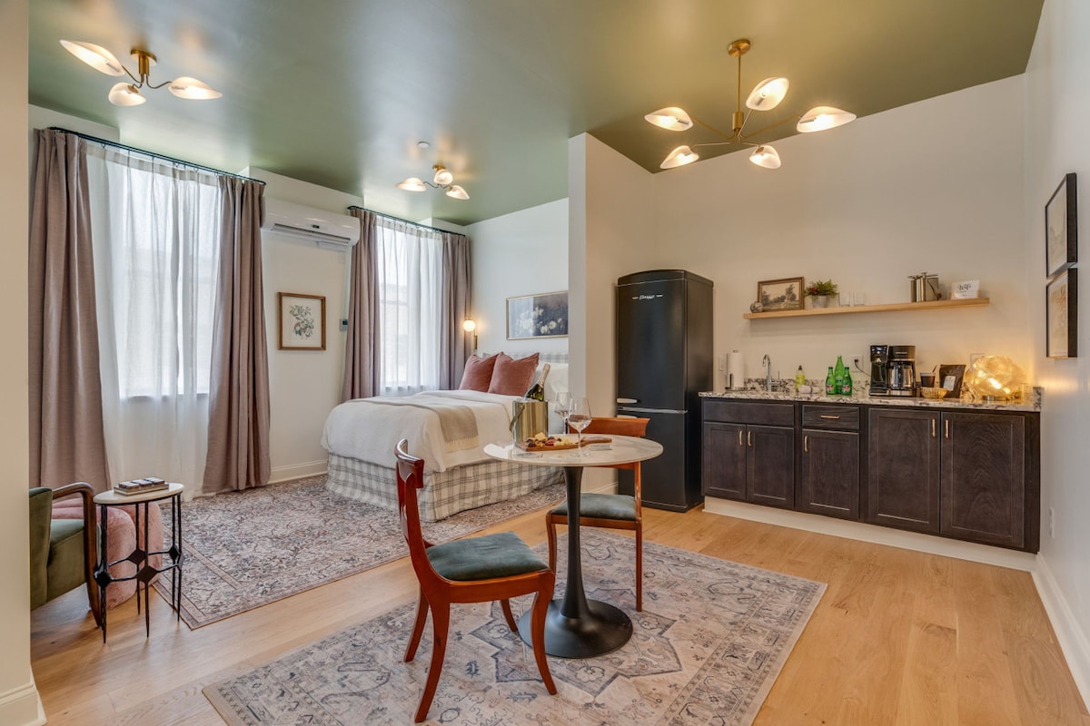 This building was home to the original 1908 post office. It recently received its second full renovation with modern amenities while preserving its original corridors and doors making way for its new life as a boutique hotel space. Downtown Elizabethton is committed to ongoing revitalization projects including tourism enhancement, public art projects, and building renovations. We are proud to be play a small role in this ongoing effort.Enjoy the glamour of this stylish, upscale place.