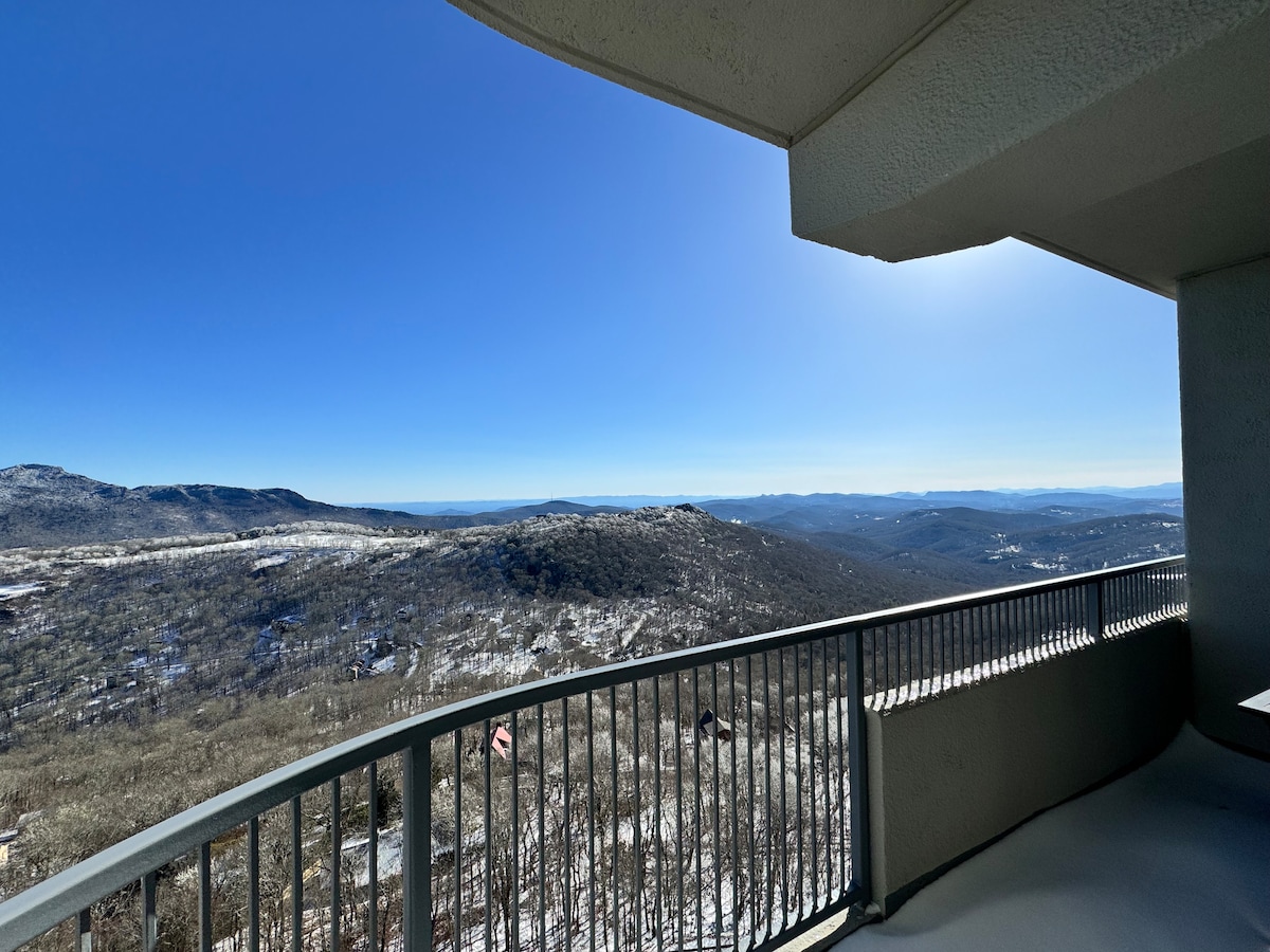 Completely renovated 10th floor Penthouse on a High Country mountaintop above 5280 feet enjoys breath taking panoramic views overlooking Grandfather Mountain as well as awe inspiring, ever-changing views of the valley and ridgeline in this highland mountain region. Our mile-high 2-bedroom, 2-bath home with 10' ceilings is fully equipped and conveniently located in Sugar Mountain village, above the town of Banner Elk and within a (10 minute) drive of restaurants, groceries, and outdoor gear.