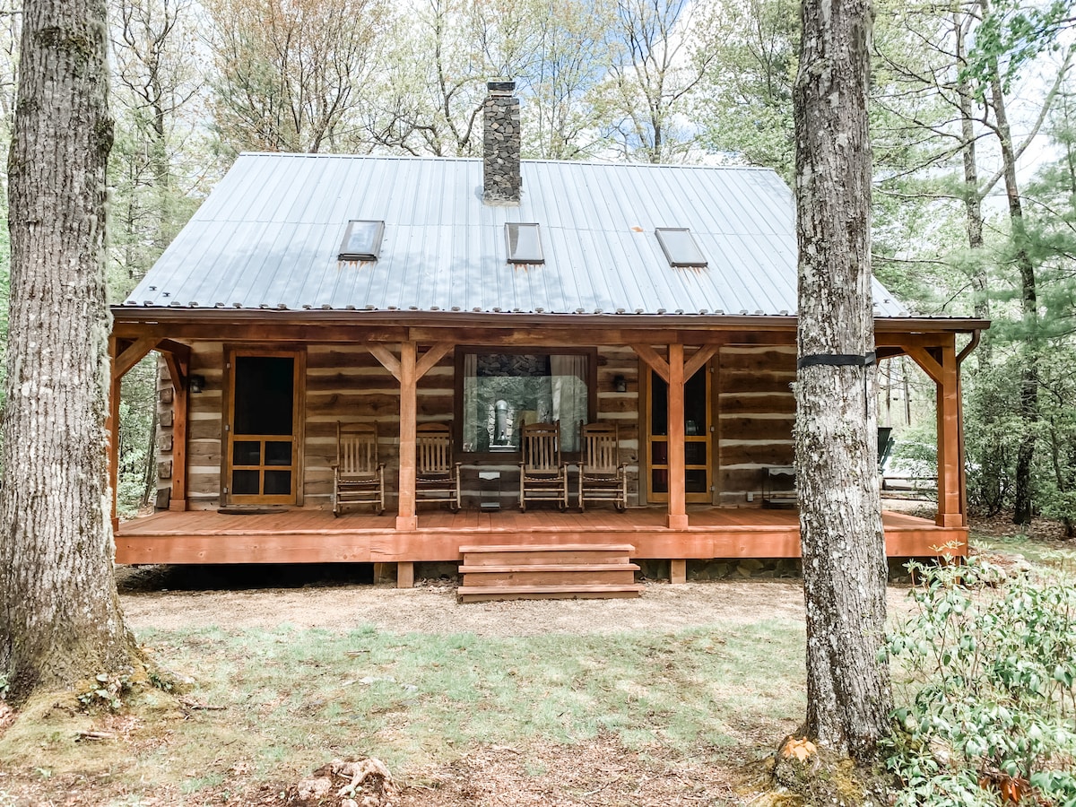 We love the window-covered walls! It's like being in a tree house... on the ground:) Outside is an acre of flat wooded and grassy yard for exploring plus a fire pit and plenty of seating. We leave you all of the things you need for a great fire!! There is a chance that guests will be staying next door at the antique cabin while you occupy the tiny house. On the other side of the cabin, there is a family favorite guaranteed-catch trout farm - but, occasionally, you may smell the fish!