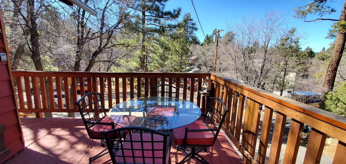 Rustic charm meets modern comfort. Newly renovated cabin retreat! Relax in the private hot tub after exploring nearby hiking and biking trails in the San Bernardino National Forest. The lake, ski slopes, and Big Bear Village are just minutes away. Stay in and unleash your culinary creativity in the large, fully stocked kitchen or on the full size gas grill outside on the covered deck. For adventure or tranquility, our cabin is the ideal retreat. Nature's beauty with all the comforts of home.