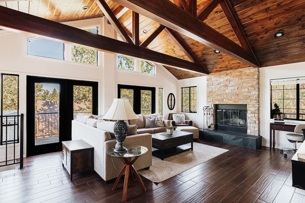 Have fun with family, friends & pets at this unique place. Nestled around Big Bear's attractions, this charming and stylish Cabin, a haven for the adults and help create a lifelong memory for the little ones. We have all the amenities one might expect of their own homes. A spacious enclosed yard to unwind by firelight or the warmth of a jacuzzi. The place is roomy and cozy at the same time. It's both rustic and contemporary. It's perfect for group trips. One dog allowed for an extra fee.