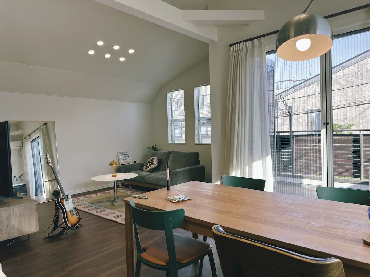 我的住宿位于东京杉并区,是一处兼具都市便利性与宁静住宅氛围的理想场所,从东京地铁丸之内线“东高圆寺站”步行仅需4分钟,地理位置优越。 东高圆寺周边分布着绿意盎然的公园和充满文化气息的景点。附近有适合散步与体验在地文化的知名景点,如蚕丝之森公园和聚集着众多复古服饰店的高圆寺商店街。其中,蚕丝之森公园被誉为都市中的绿洲,四季风景各异,非常适合早晨散步、静心阅读,或是与家人悠闲度过亲密时光。 从东高圆寺站乘坐丸之内线可直达新宿站(约7分钟),前往东京站约需27分钟,交通十分便捷。到涩谷约20分钟、上野约35分钟、池袋约20分钟,无论是观光还是商务出行,都是理想的据点。 周边还有许多时尚咖啡馆、个性复古店铺,以及深受当地居民喜爱的美食餐厅,让您尽情感受高圆寺那份既现代又怀旧的独特魅力。 欢迎您入住这间融合文化与便利性的东高圆寺住宿,尽情享受专属于东京的丰富时光。