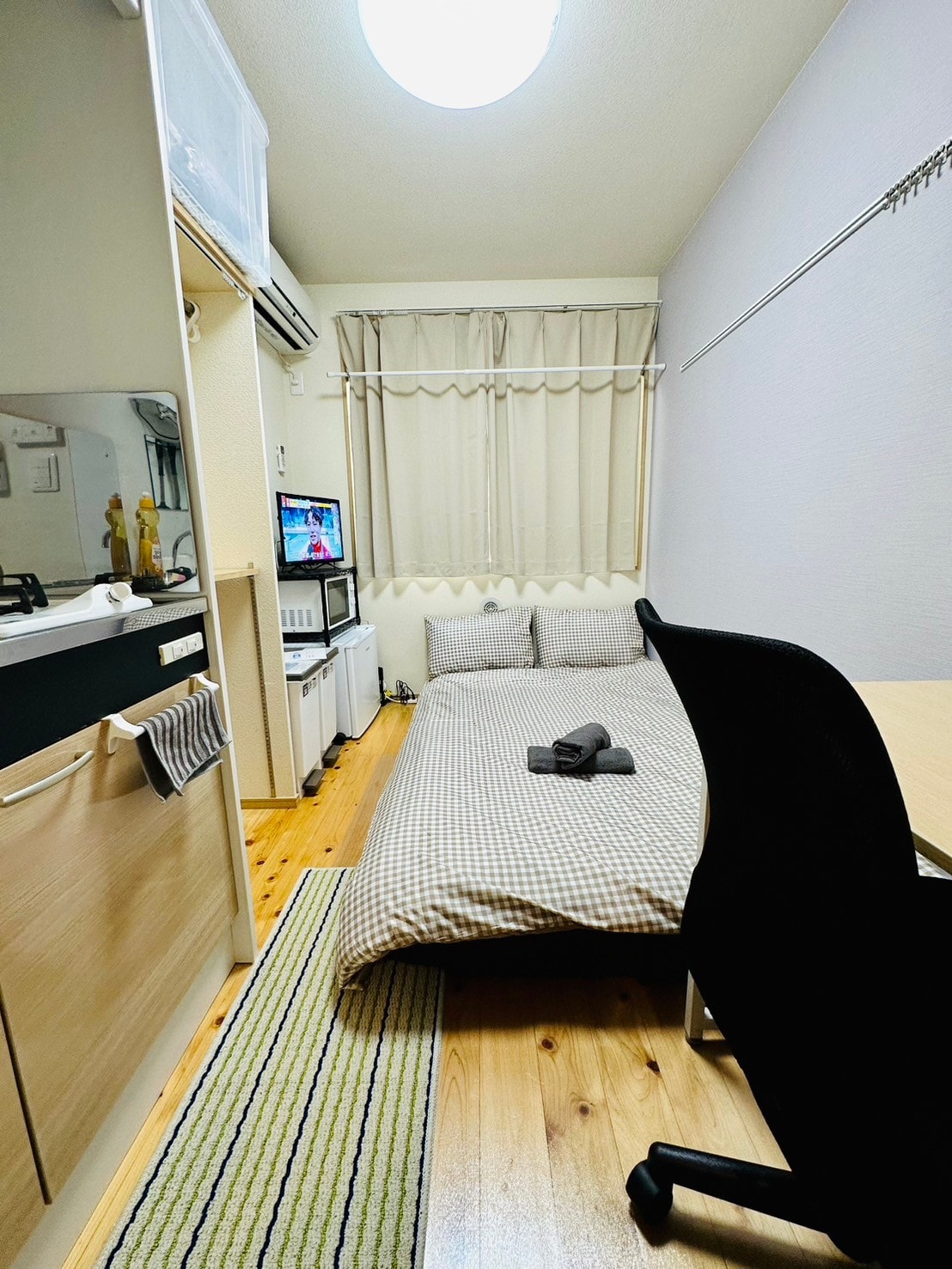 房间安静,整洁时尚,有电动开关的双层百页窗户、居住舒适。 寝具全部配备温和的棉制品。 这房间101是在1楼、没有楼梯。 从中野站步行 3 分钟即可到达幸运旅馆。 101房间是:约 15平方米 床的尺寸:210 厘米 x 140厘米。 这旅館是繁华街上安静的地方。 由于很近中野站、200米、日中会听到电車的声音。如果你不喜欢听到外来杂音、请关上防音双重百页铁闸窗。 在同一栋公寓内,还有其它的房间、请查看房东主页。或点击房东头像。 配备高速NTT光线路Wi-Fi 对远程工作者十分之推荐。 WiFi:免费使用、BIGLOBE光线路(日本NTT)