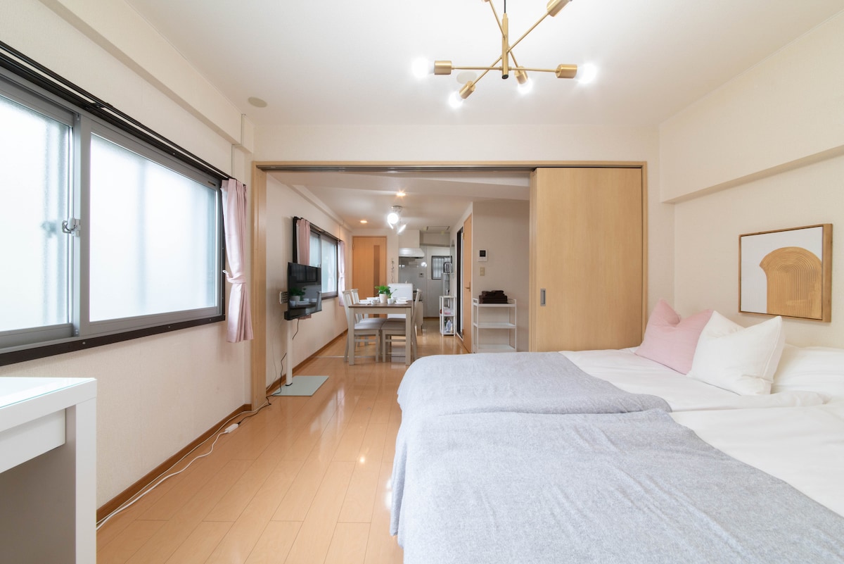 2022年开业,全新的设计型公寓,有电梯,新大久保车站步行3分钟,可以步行到新宿逛街!