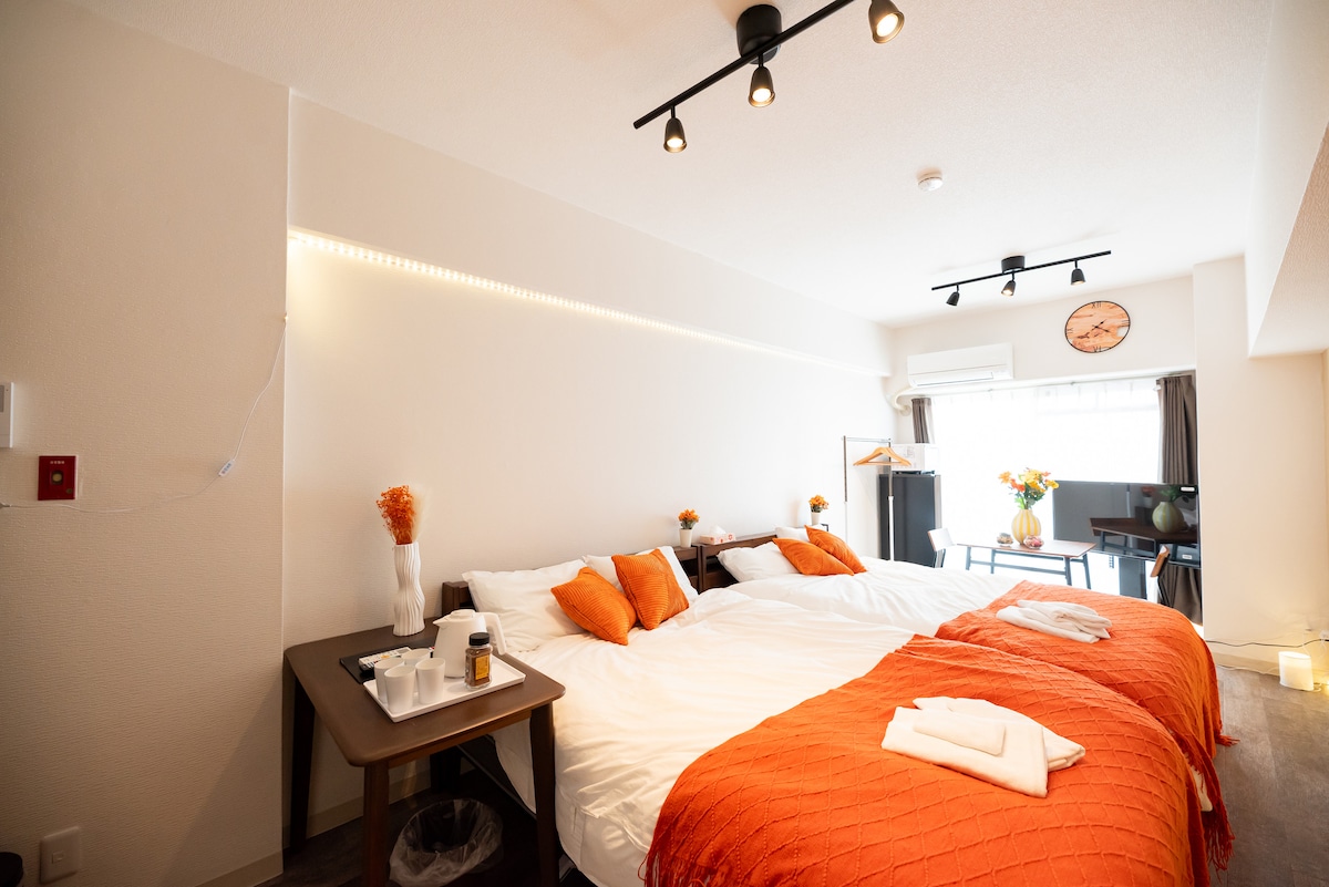 DDC 梅田/双大床房最大4人/车站8分/直达梅田难波新大阪心斋桥/花火大会