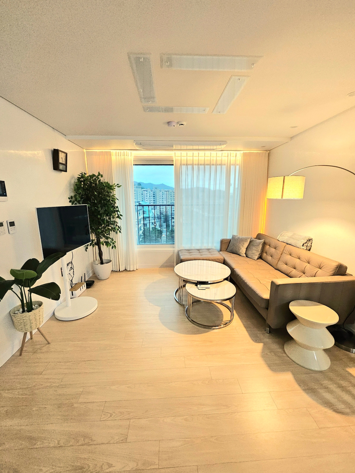 【开业特价】免费停车、55英寸电视、Netflix、3分钟到达Jeongja站、民宿床上用品、开放式景观