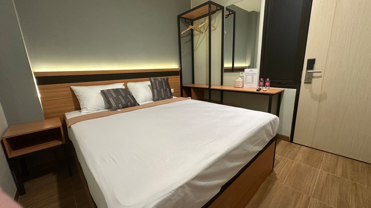 Your Dreamy & Tranquil Retreat in North Bandung. Escape to our elegant room for two, featuring a plush queen bed and private balcony amidst Bandung's fresh highland air. Elevate your stay: The popular Padel Court is just 25 steps away, perfect for a healthy lifestyle blend! Located only 5 mins from Pasteur Toll Gate. Enjoy free Wi-Fi, AC, hot water, and shared kitchen access. Experience serene comfort and unmatched convenience. Book your refined escape today!