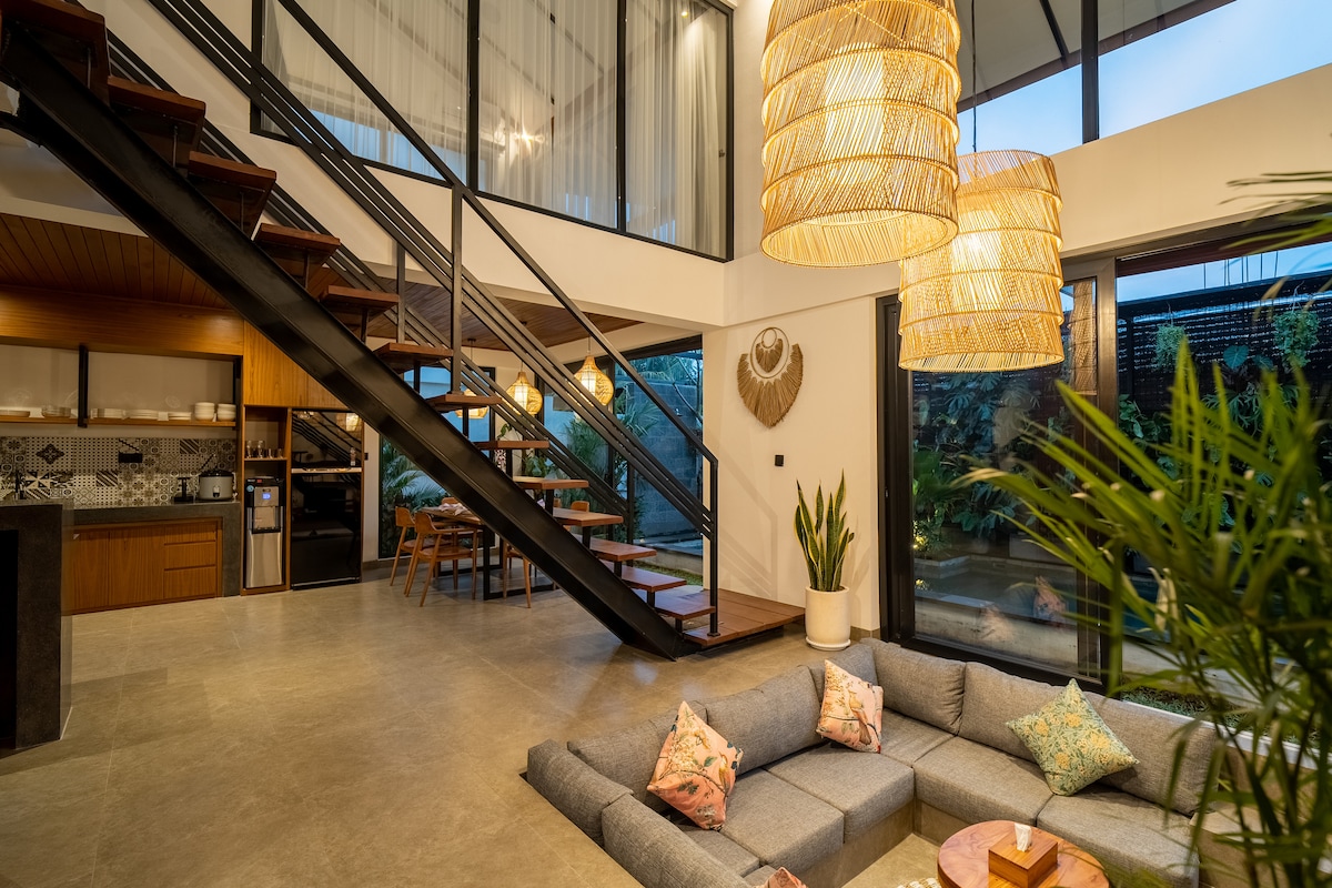 Langit Pitu Villas is located in Ketewel, Gianyar Bali 30 minutes to Ubud center, 26 minutes to Sanur and 40 minutes to Ngurah Rai International Airport. Create lasting memories with your travel companions in this captivating 2-bedroom, 2-bathroom haven, nestled amidst lush rice fields just a 5 minutes from Rangkan Beach. the Villa comfortably accommodates 4 guests, making it ideal for a romantic couple's retreat, a fun-filled getaway with close friends, or a relaxing family vacation.