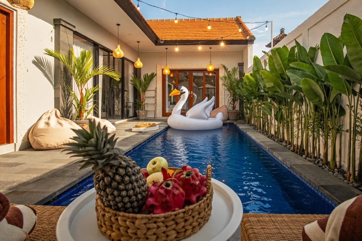 A stylish 2-bedroom villa in Pererenan blending tropical charm with modern comfort. Designed with stylish touches and natural elements, this villa features a private pool, lush garden, cozy poolside lounge, and sunbeds for relaxing. Just minutes from the beach, cafés, and top dining spots — perfect for surfing, sunsets, and soaking in Bali’s vibrant atmosphere.