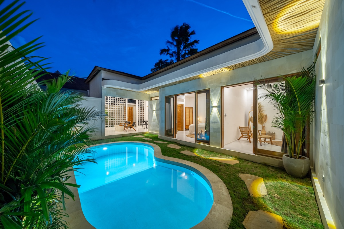 Brand new villa in prime Jimbaran location: • 2 stylish air-conditioned bedrooms with garden views • En-suite bathrooms with slippers, amenities & hairdryers • Working desk, ironing facilities • Large private pool & spacious BBQ-friendly terrace • Fully equipped kitchen • 300 Mbps Wi-Fi — ideal for remote work or streaming • Daily cleaning, including fresh towels & linens • Baby cot & high chair on request • PS5, Netflix on request • Concierge service for airport transfers, tours, scooters& more