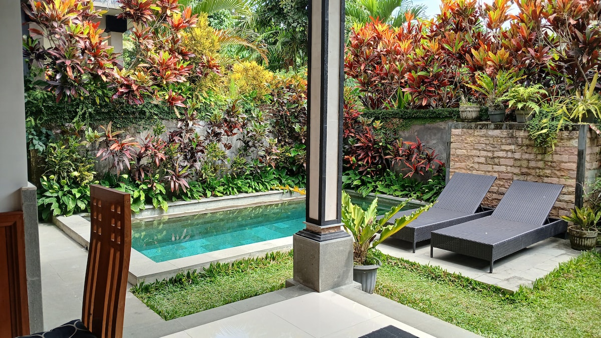 A newly built private 3bdr house for chasers of an authentic Indonesian character and a comfortable sleep. This 150 year-old solid wood redesigned house is full of eye-pleasing features. Based in a quiet cul-de-sac neighbourhood on top of a canyon. Offering ample natural light thanks to all-round glass doors and windows, our modern interior is light and dry. The long pool and yoga terrace are a bonus. A perfect spot for sunrise, Mt Agung and bird-watching!