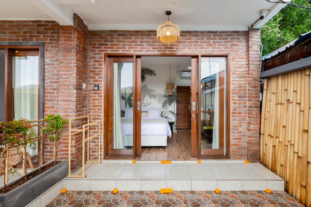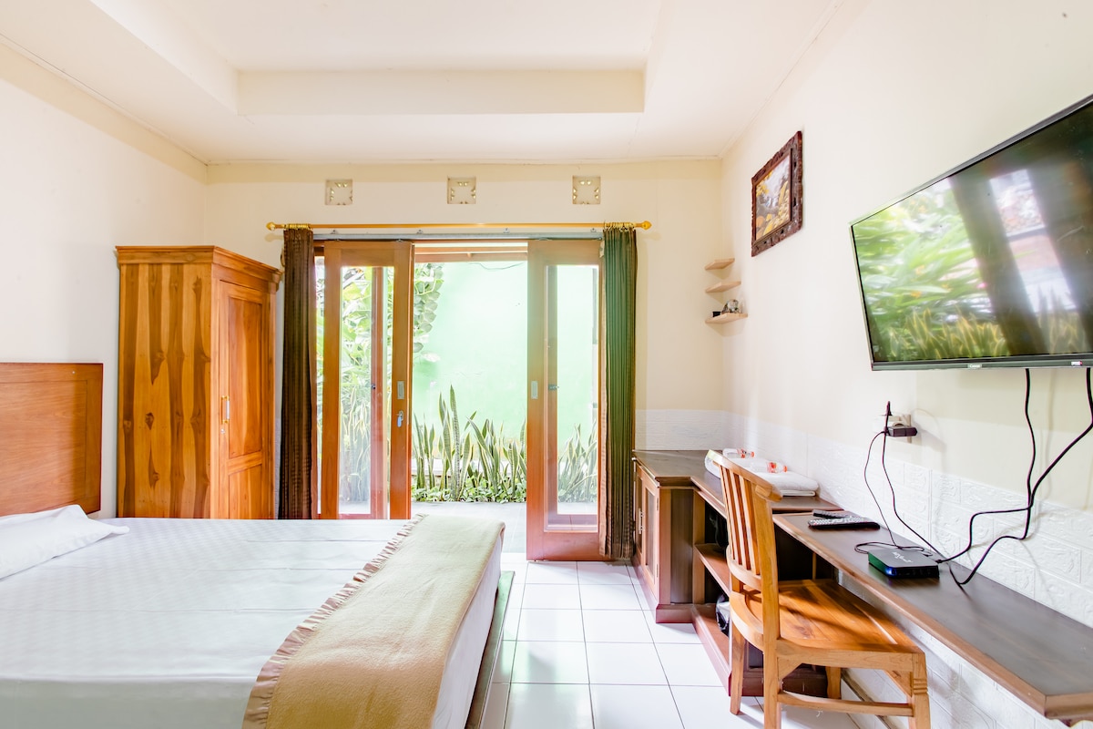 Why You’ll Love It: 1. Quiet alley, just minutes from Ubud Center 2. Private balcony with nature views 3. Free breakfast delivered daily 4. AC and a comfortable bed 5. Fast Wi-Fi + table and chair, for remote work 6. Private bathroom with hot/cold shower 7. Free scooter parking + easy Grab/Gojek access Perfect for couples, solo travelers, or digital nomads.