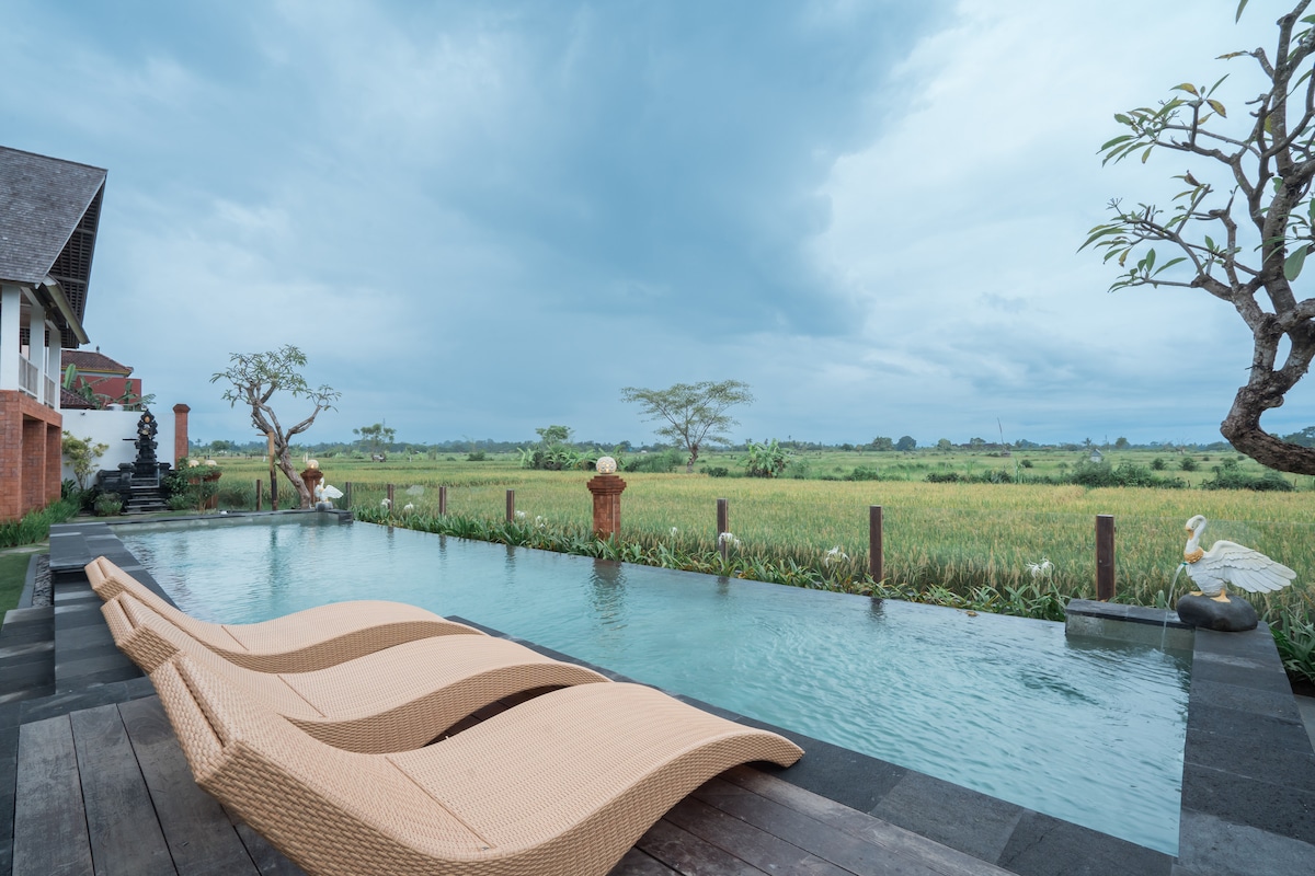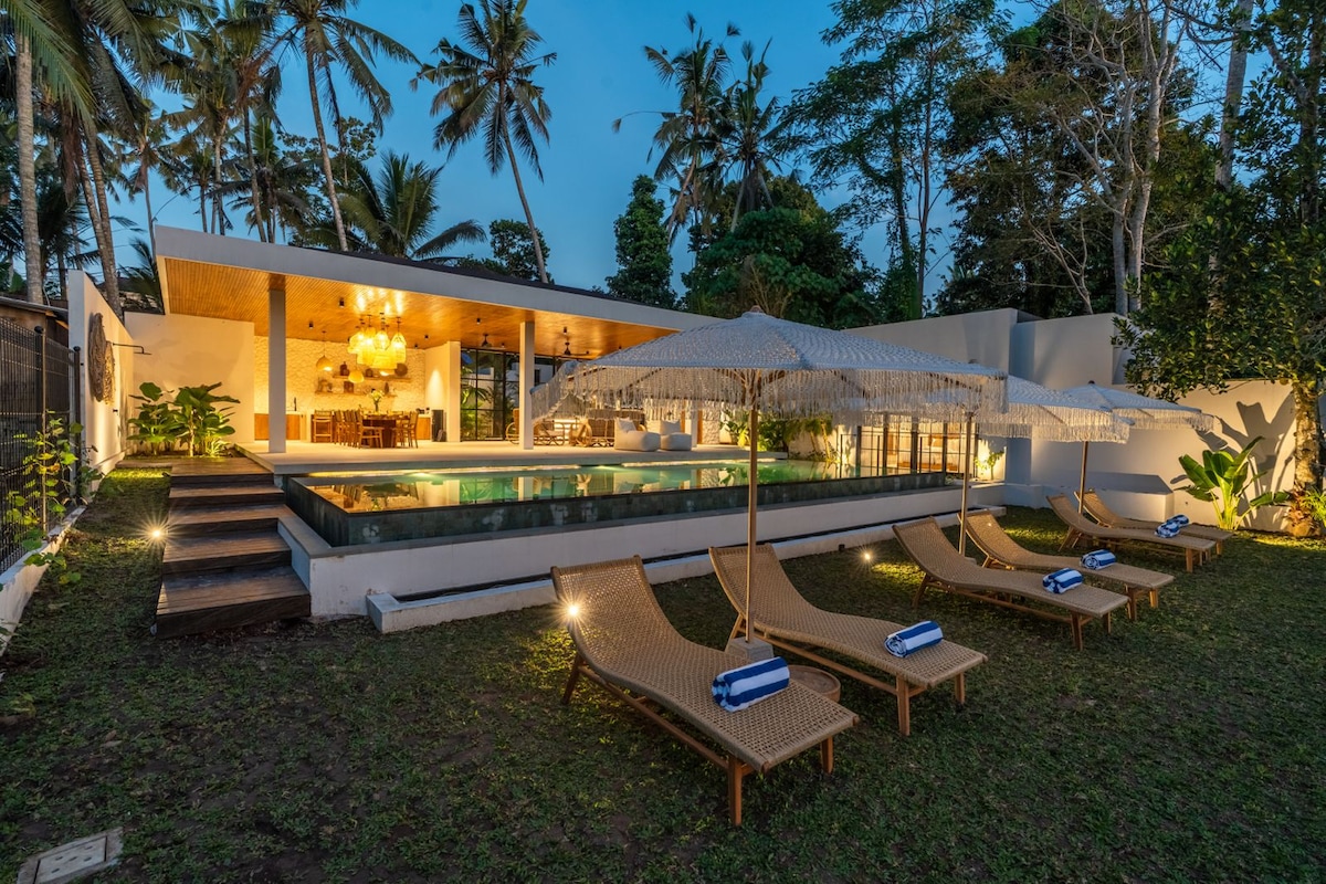 Experience your 130m² villa blending Japanese minimalism, Peranakan heritage, and Balinese warmth. Enjoy complete privacy with cozy living room, pantry kitchen, 2 bathrooms with bathtubs, and private pool with loungers. The only shared spaces are our serene garden featuring a majestic tree beside a traditional Balinese prayer stone. Perfect for up to 3 guests. Every detail enhances your connection to Bali's serene environment.