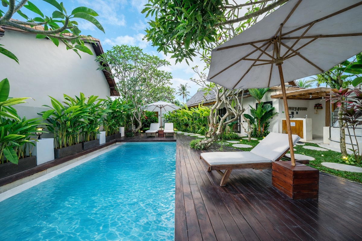 温馨的1卧室,位于乌布市中心,带泳池、花园和凉亭