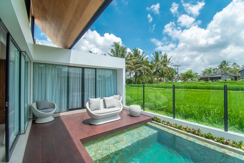 Two (2) bedrooms private pool villa with the view of rice paddies in Ubud awaits you. New and well architectured by Teguh Laksono, a 172 sqm of space, two bedrooms with extra-long Serta beds, view of the private pool & ricepaddies. Comfort & simple living, foyer, fully equipped kitchen. Conveniently located 6km to Pison Ubud. 10 mins to Rüsters or Pepito. Enjoy the charm of 'Desa' life while staying close to popular attractions.