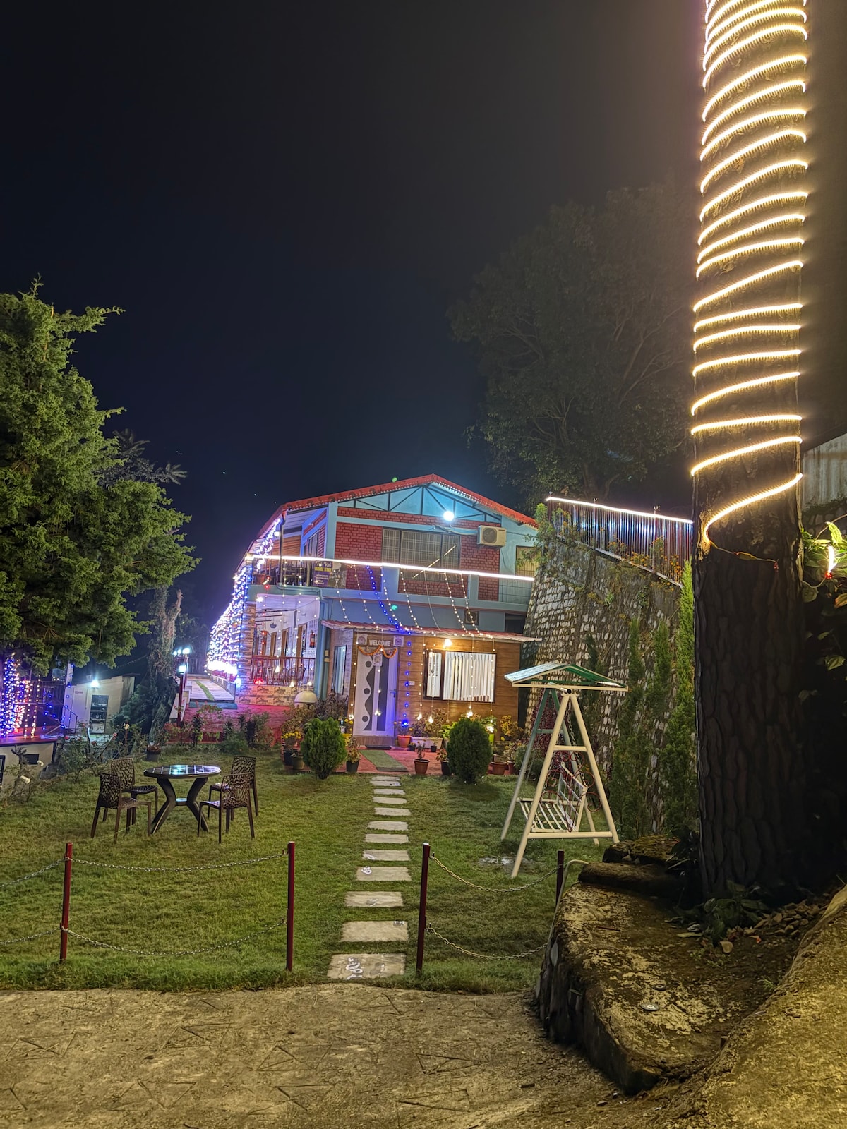 ◆Set on a scenic hillside within a 10,000 sq.ft estate, this hilltop stay offers two cosy rooms with wooden accents, 32” TVs, heaters, and large windows framing greenery. ◆One room is a mezzanine floor, which can also be used for peaceful reading or a lounging nook. ◆Guests can enjoy a lawn with a bonfire and BBQ, and dine at the in-house restaurant. ◆Just 3 km from the paragliding site, 10 km from Naukuchiatal, and 13 km from Bhimtal, with trekking trails and Chota Kailash Dwar located close by