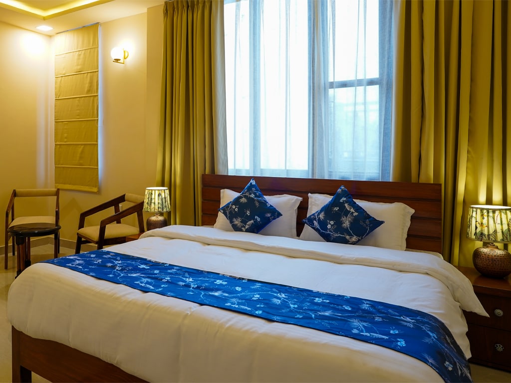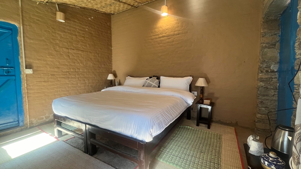 The Luxury Attic Suite is an airy, light-filled sanctuary crafted for travellers seeking intimacy and elegance. With slanted wooden ceilings, layered textures, and a private balcony overlooking the valley, it invites long mornings, slow evenings, and quiet reflection. Every detail — from the curated décor to the soft mountain lumière — creates a cocoon of serenity. Ideal for couples or solo seekers, this suite blends refined comfort with the timeless charm of Ramgarh’s hillside stillness.