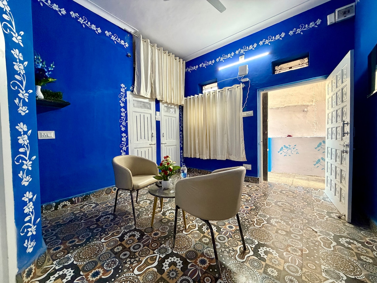 Welcome to Lake Pichhola Villa, a spacious first-floor retreat with two airy bedrooms, each with AC and attached bathrooms. A geyser in d larger room supplies hot water to both. Relax in d large hall, unwind on d east-facing balcony with plants, or enjoy terrace access on the second floor. D kitchen is modestly equipped for tea, coffee, or light snacks. With 100 Mbps WiFi and reliable power backup, it’s an ideal stay for families, friends, or remote workers seeking comfort near Udaipur’s charm.