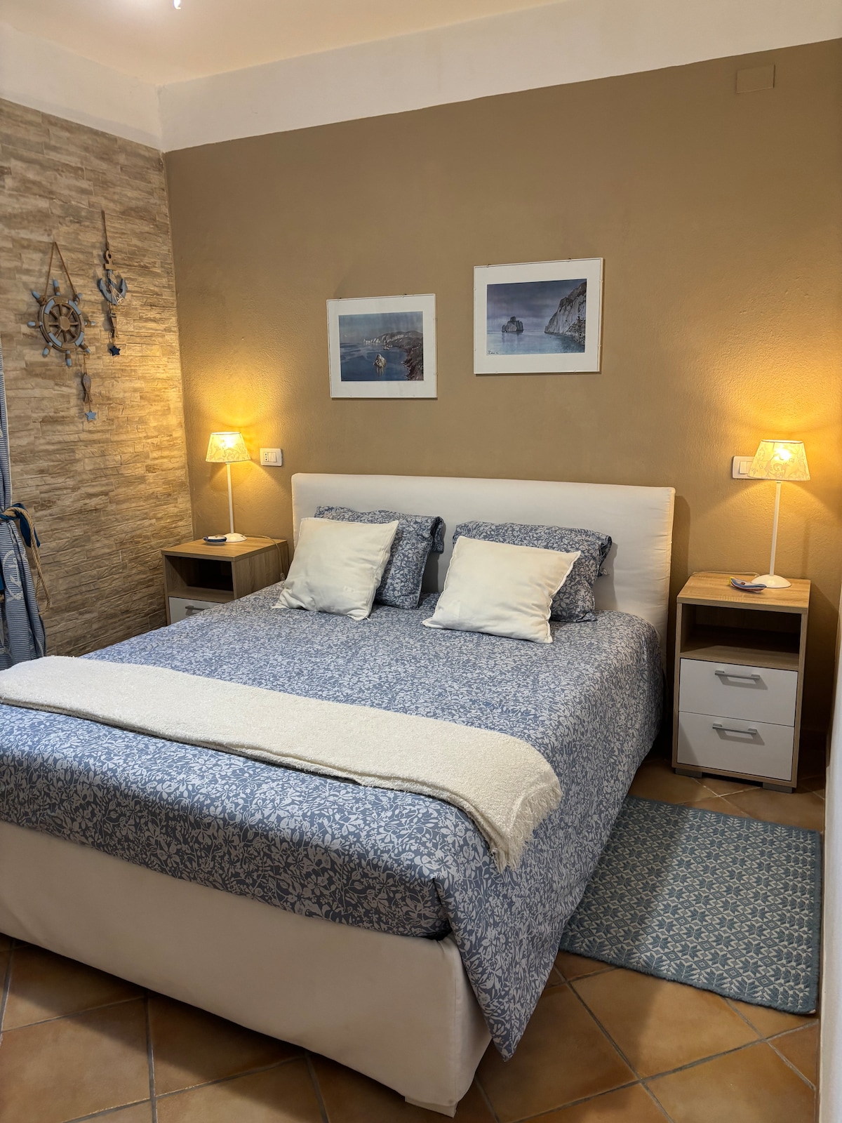 Totally renovated following Covid19, the apartment guarantees maximum privacy and is suitable for a maximum of two people. Located on a slight hill, a few minutes from the sea, it has a double bedroom, large bathroom, designer kitchen, lounge area, Wi-fi, fan and air conditioning. Parquet floors and hand made furniture. Surrounded by large windows overlooking the garden, it is ideal for those who love the sun, nature and the sea. Private entrance with parking and equipped garden area.